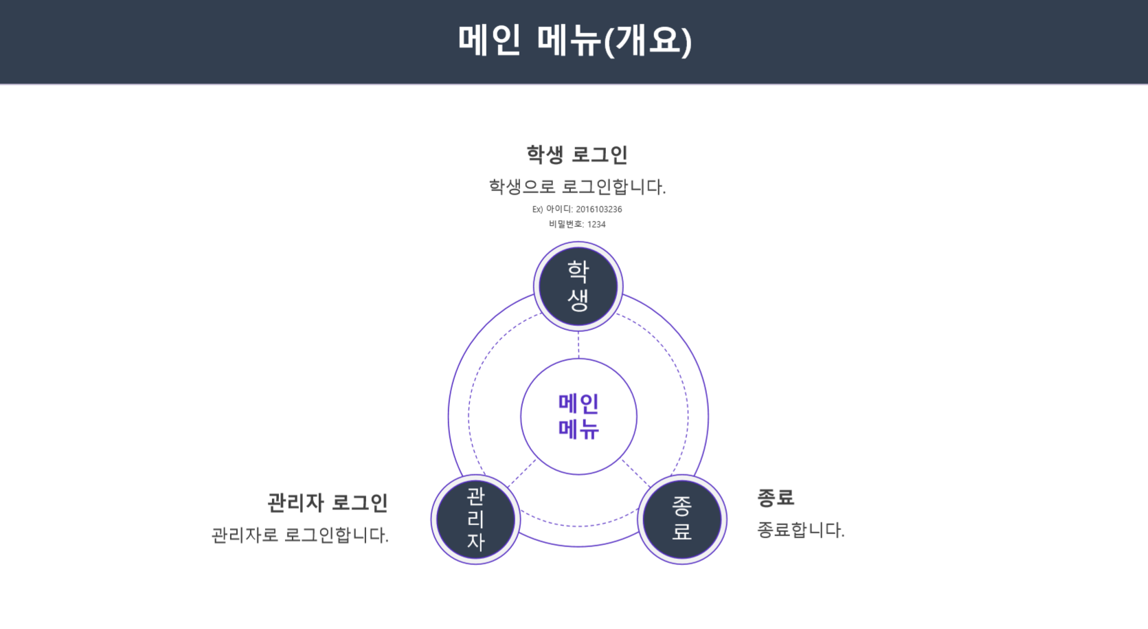 /* 내부 호출 함수: applyLecture, printStudent, printLectures, disapplyLecture, changePassword*/