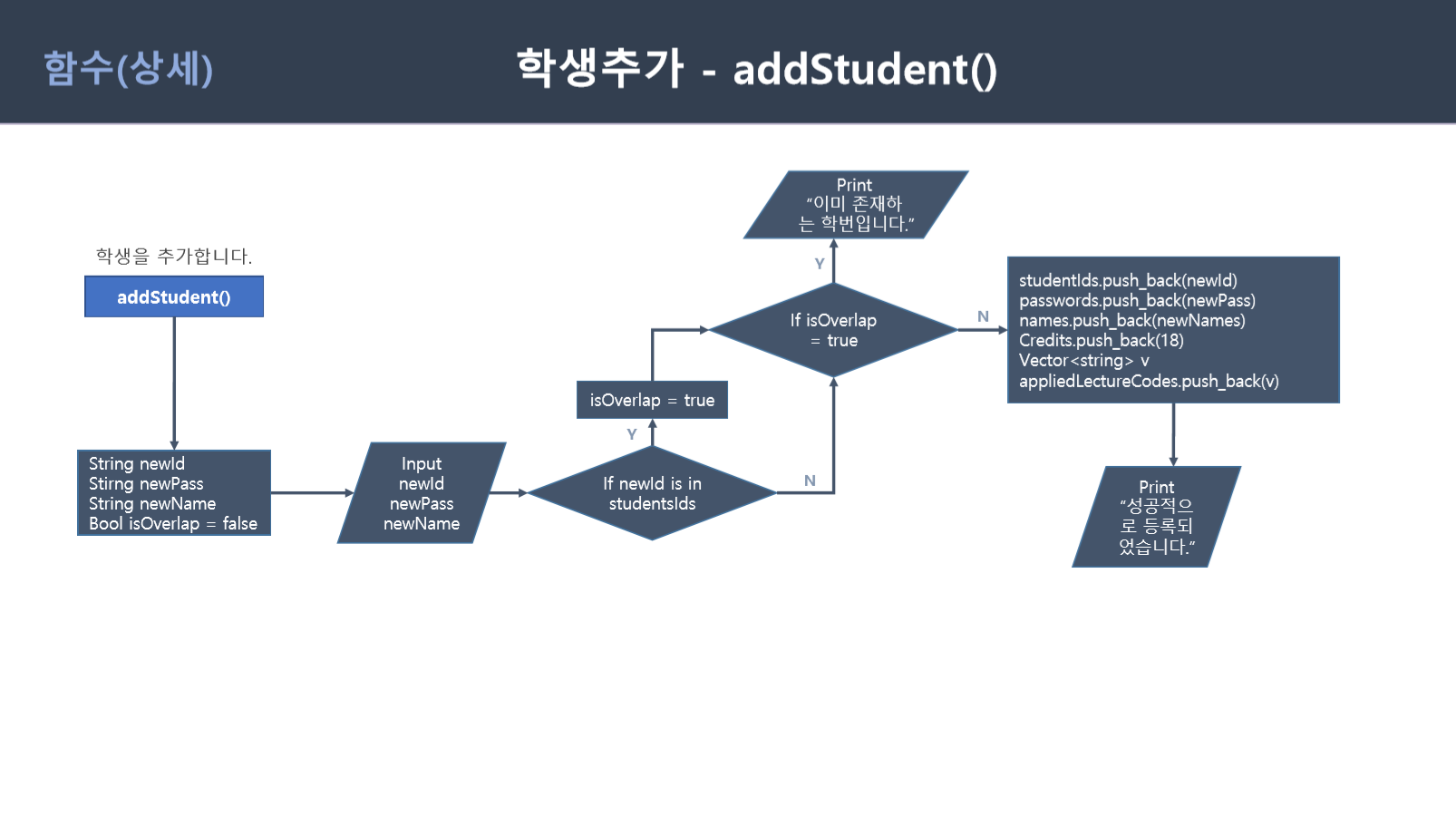 void addStudent(vector<string>& studentIds, vector<string>& passwords, vector<string>& names, vector<int>& credits, vector<vector<string>>& appliedLectureCodes);