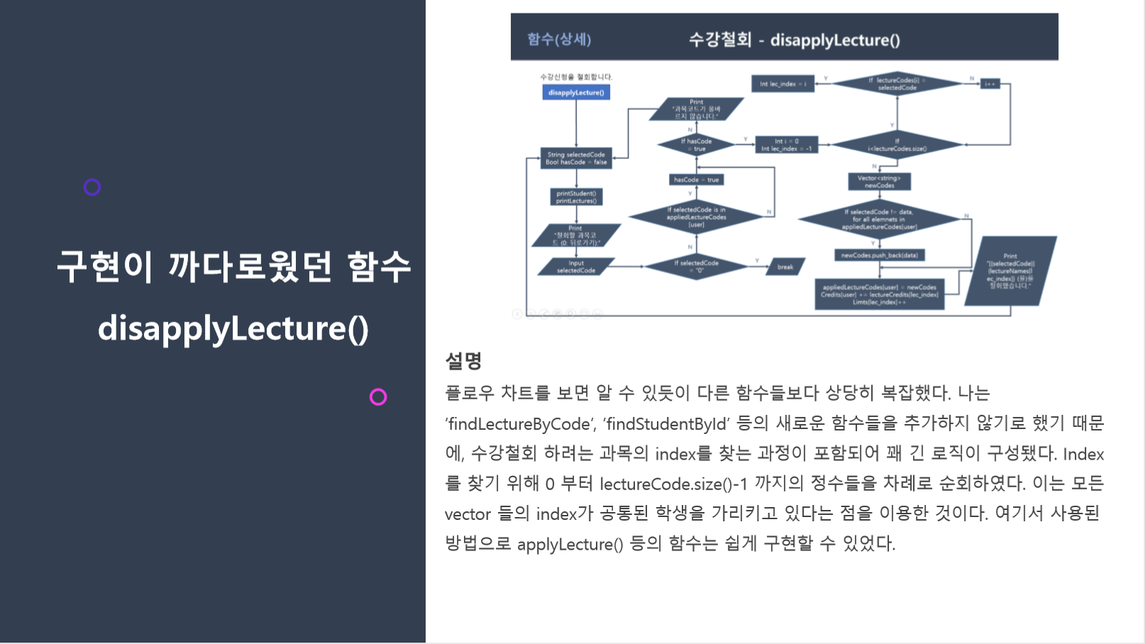for (auto data : appliedLectureCodes[user]) // selectedCode를 제외한 data를 새로운 벡터에 추가한다.